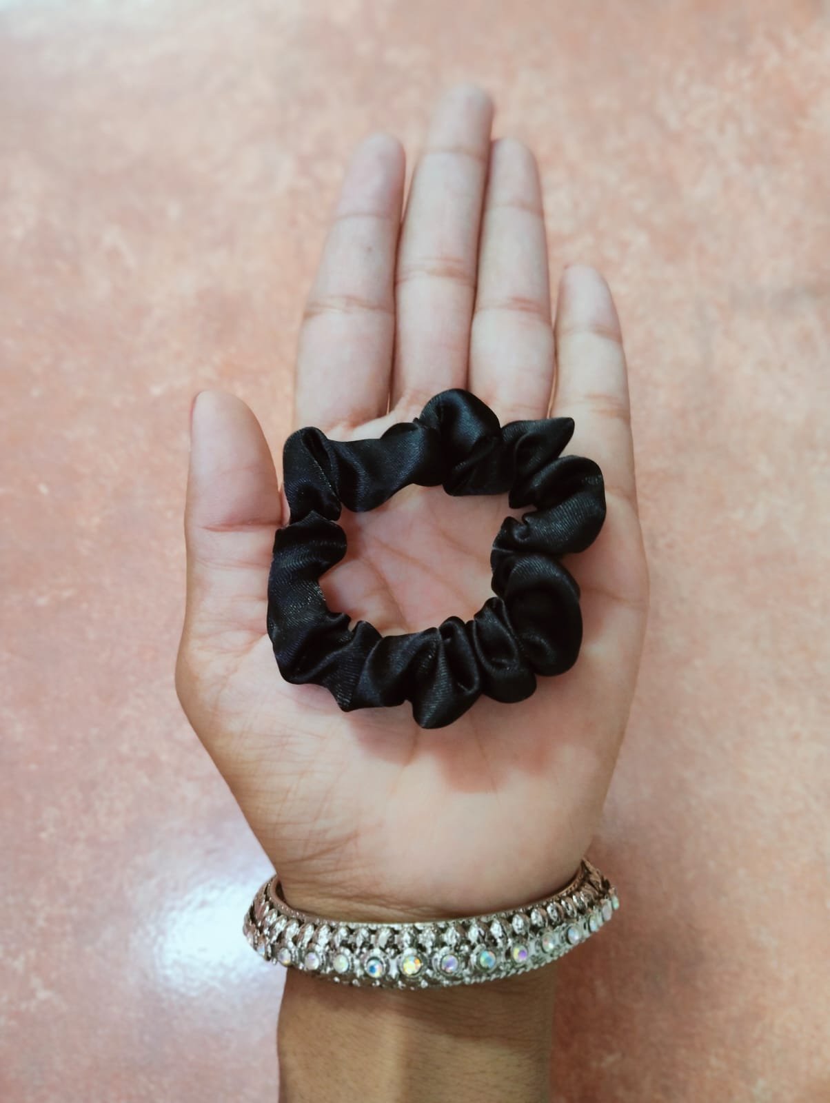 Black Satin Mini Scrunchie