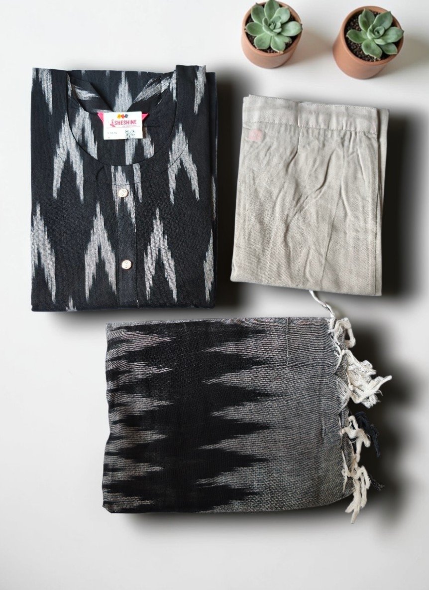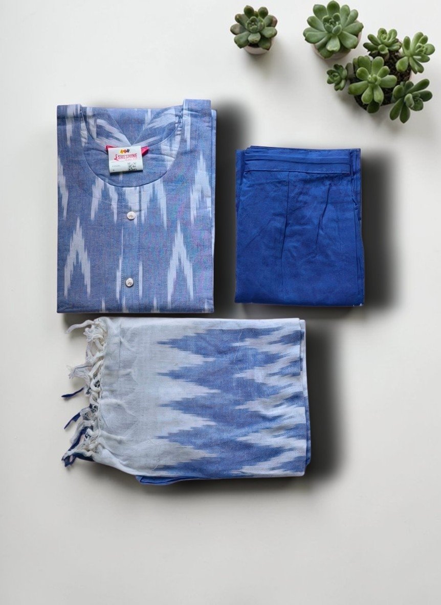 - HANDLOOM OR PURE COTTON IKAT durable, breathable, and often handwoven textile characterized by its unique, slightly blurred patterns, created by resist-dyeing the yarn before weaving.