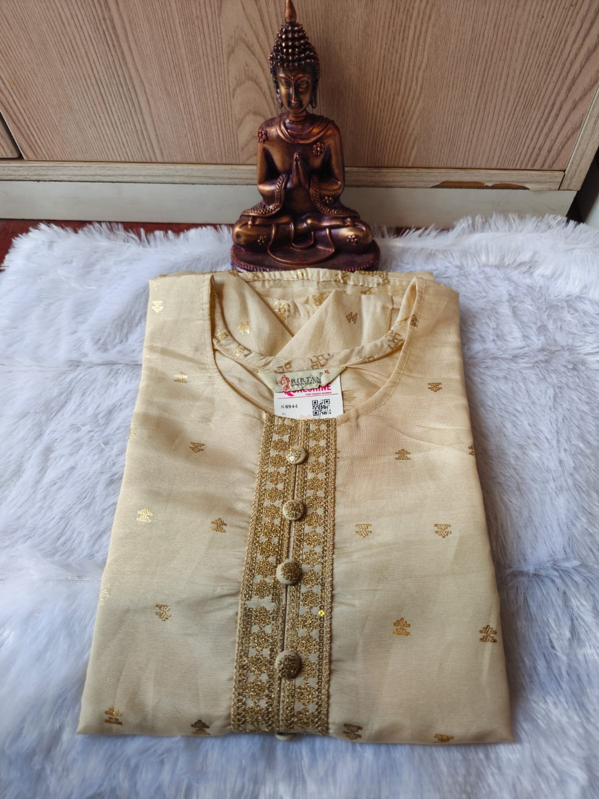 Exude elegance in this dazzling Sandal Anarkali suit.