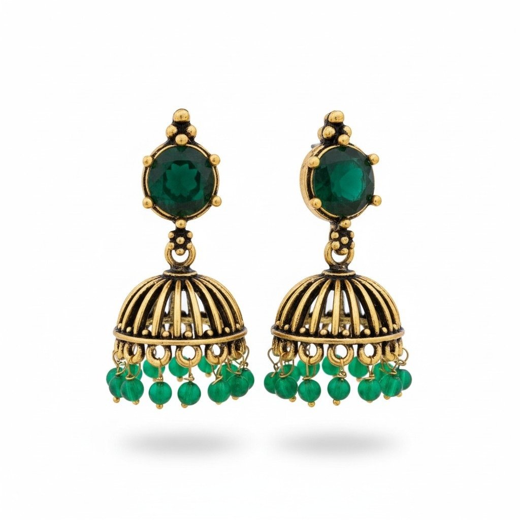 ROYAL EMERALD DOME JHUMKAS EARRINGS